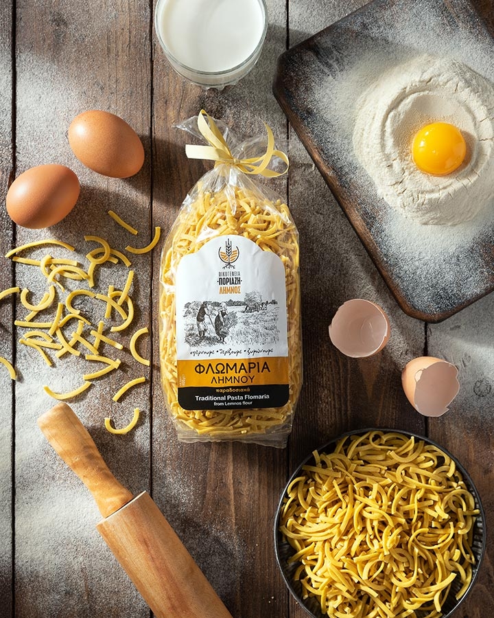 Η παρασκευή των παραδοσιακών ζυμαρικών της Λήμνου παραδοσιακά θυμίζει γιορτή καθώς οι γυναίκες με το φρέσκο αλεύρι νέας σοδιάς κάθε καλοκαίρι μαζεύονται στα σπίτια και με τραγούδια και χαρές φτιάχνουν τα ζυμαρικά του χρόνου. Εμείς στην “Οικογένεια Ποριάζη” διατηρήσαμε τις συνταγές και χρησιμοποιώντας το αλεύρι Λήμνου σας προσφέρουμε τα μοναδικά αυτά ζυμαρικα.