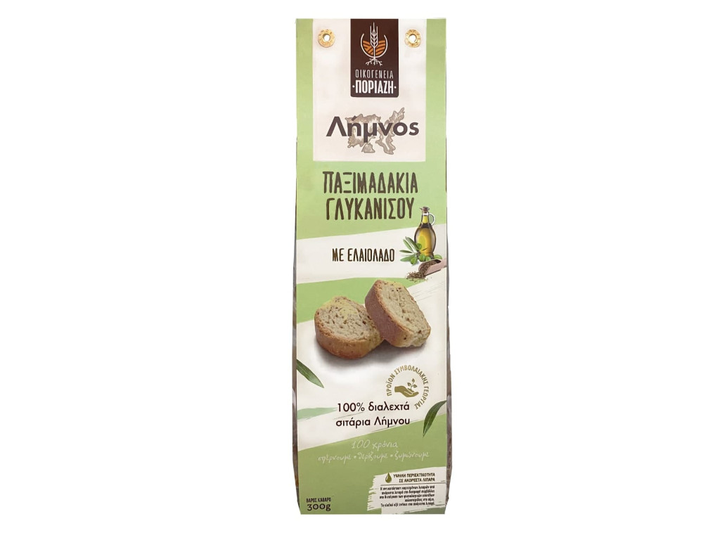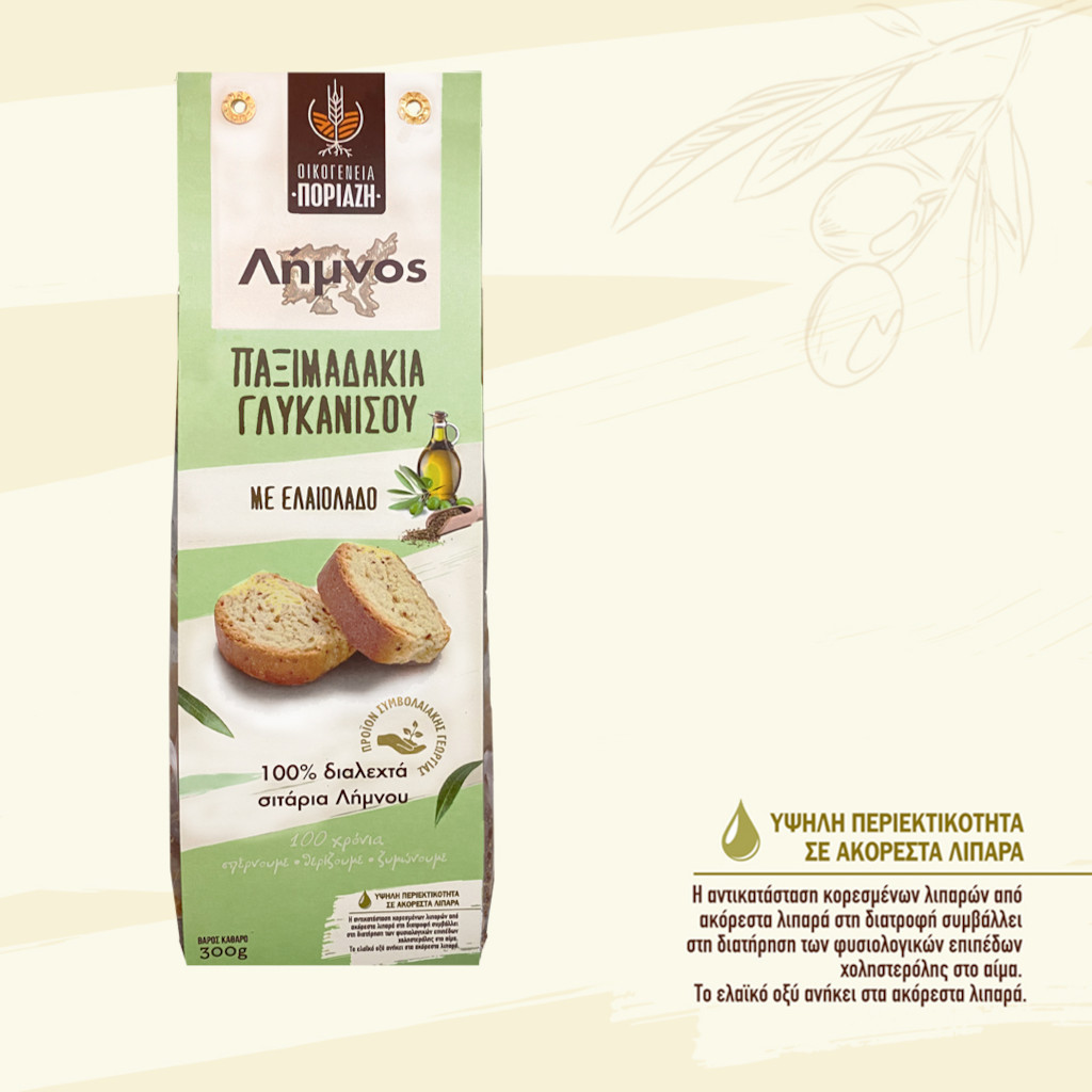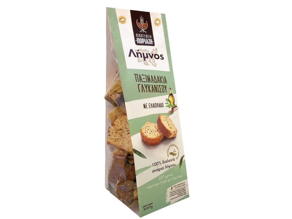 Τα Σιταρένια Παξιμαδάκια Λήμνου με ελαιόλαδο και Γλυκάνισο της οικογένειας Ποριάζη συνδυάζουν την αυθεντική γεύση του τοπικού σιταριού με το άρωμα του γλυκάνισου, προσφέροντας μια μοναδική γευστική εμπειρία.